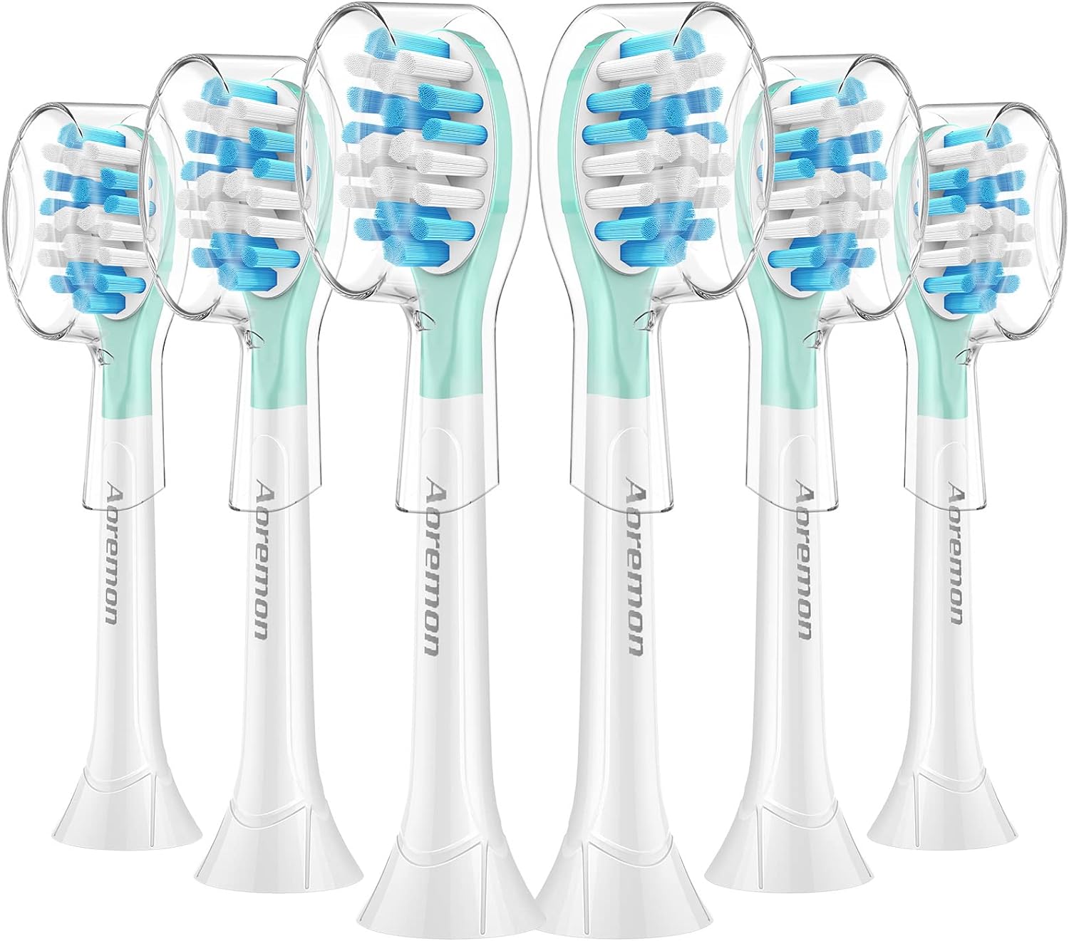 Aoremon Replacement Toothbrush Heads for Philips Sonicare C3 Premium Plaque Control HX9044/65 G3 Premium Gum Care HX9054/65, 6 Brush Heads, White