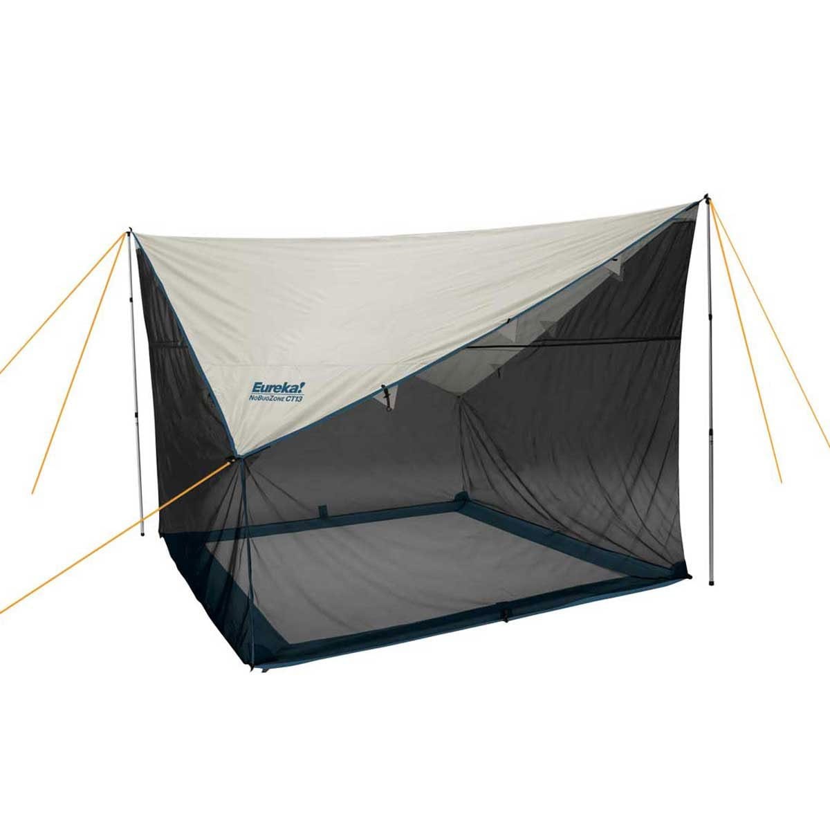 Ideal for canoe trips, group backpacking, car camping, picnics, and backyards, the lightweight and compact NoBugZone CT 13 screen shelter offers shade protection and a bug-free environment. The NoBugZone CT features full-length no-see-um mesh walls that keep insects out while still letting a cool breeze in. Simple to set up, the NoBugZone's guy lines can be roped to surrounding trees or optional poles (sold separately). Integrated tie-back loops allow the mesh walls to be easily fastened back when using as shade/rain shelter, and internal gear rings provide an ideal clothesline tie-off. 3 zipper sliders on each door makes for easy use with a hammock when tied off to trees, and 3 reinforced tarp tie offs on each edge allow for extra stability anywhere. Measures 9 feet square (275 cm) with a center peak height of 7 feet, 4 inches (224 cm); diameter of 12 feet, 8 inches (386 cm); packs down to 7 x 19 inches (18 x 48 cm); weighs 5 pounds, 14 ounces (2.66 kg). Eureka! found its humble beginnings in 1895 and today their camping gear gives you the freedom to have fun — from tents to cooking systems, and sleeping bags to camp furniture — reliable, easy-to-use, and packed with features campers care about. With Eureka!, you don’t have to sweat the small stuff and can enjoy the freedom to have a good time with friends and family. Because you go for the fun of it.