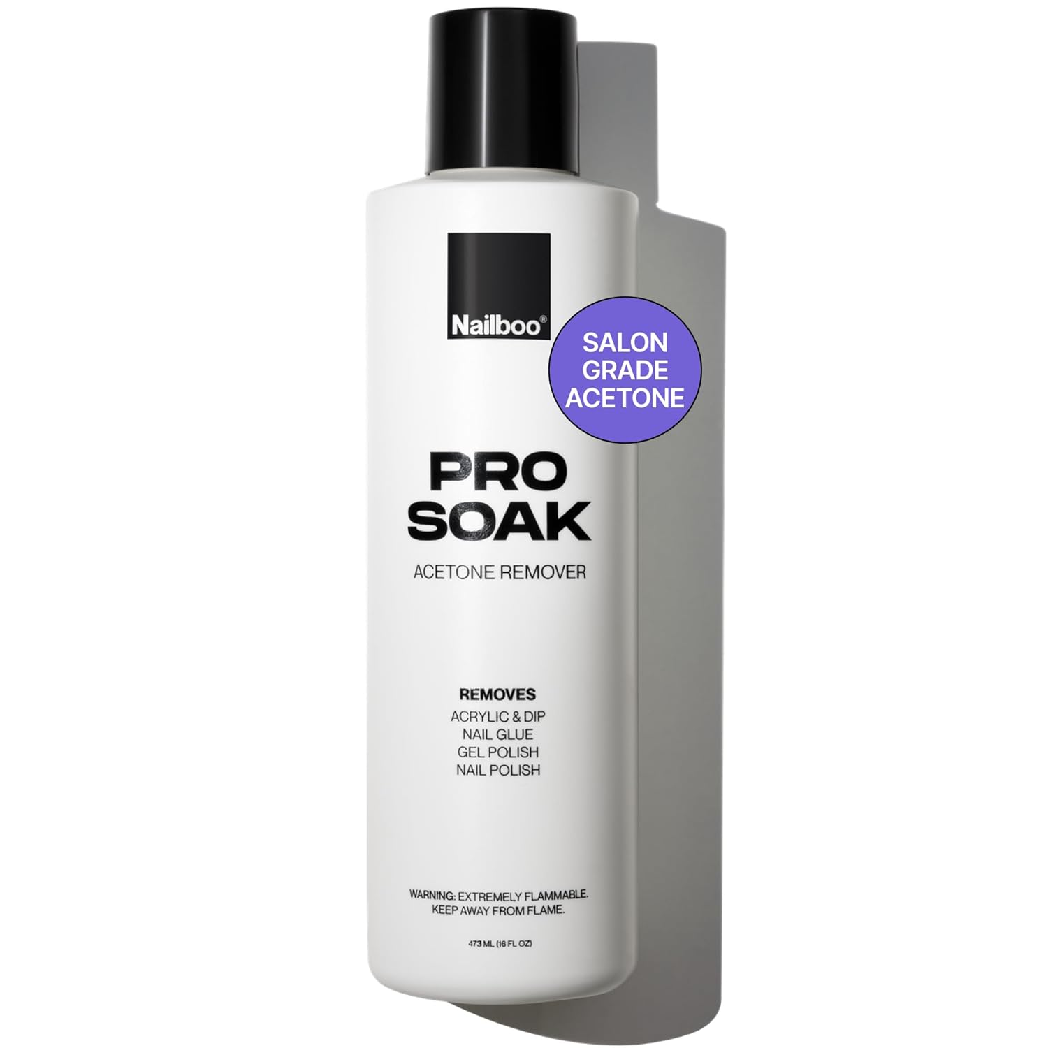 Nailboo 100% Acetone Nail Polish Remover - Gel Polish Remover for Nails, Pure Acetone Polish and Dip Powder Remover - Salon Quality Removal for Polish, Gel, Acrylics & Dip - 16 Fl Oz