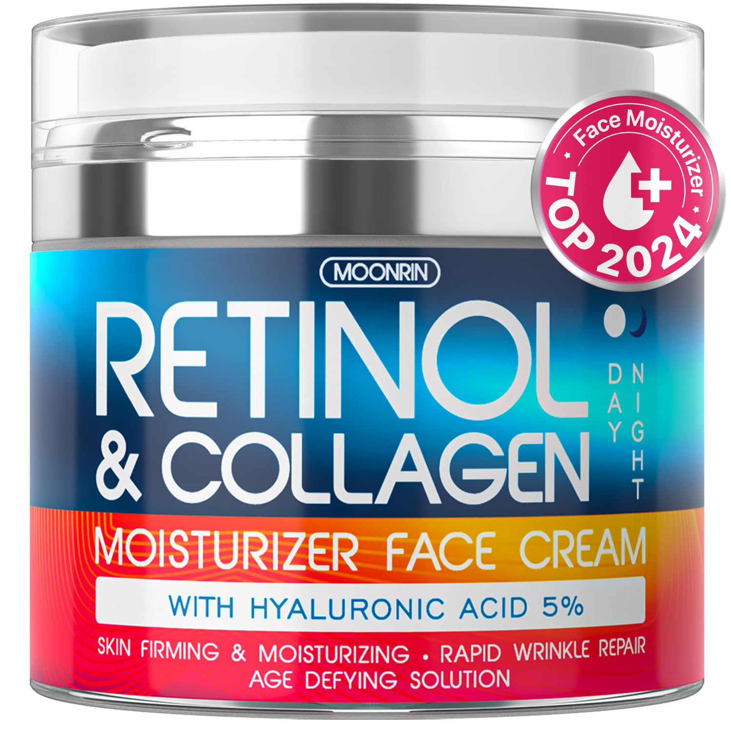 Retinol Cream for Face with Hyaluronic Acid, Day-Night Anti-Aging Moisturizer for Women, Men, Collagen Cream for Face Reduces Wrinkles, Dryness, 1.85 Oz