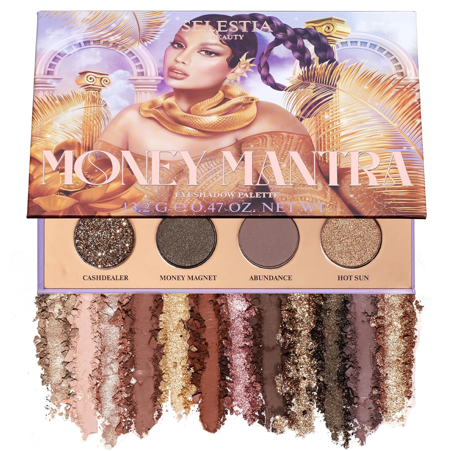 SELESTIA BEAUTY Makeup Eyeshadow Palette Money Mantra - 12 Blendable Shades with Matte, Satin, Shimmer and Glitter Finishes - High Pigmented Eye Shadow Palette, 0.47 oz - Valentine's Day Gifts