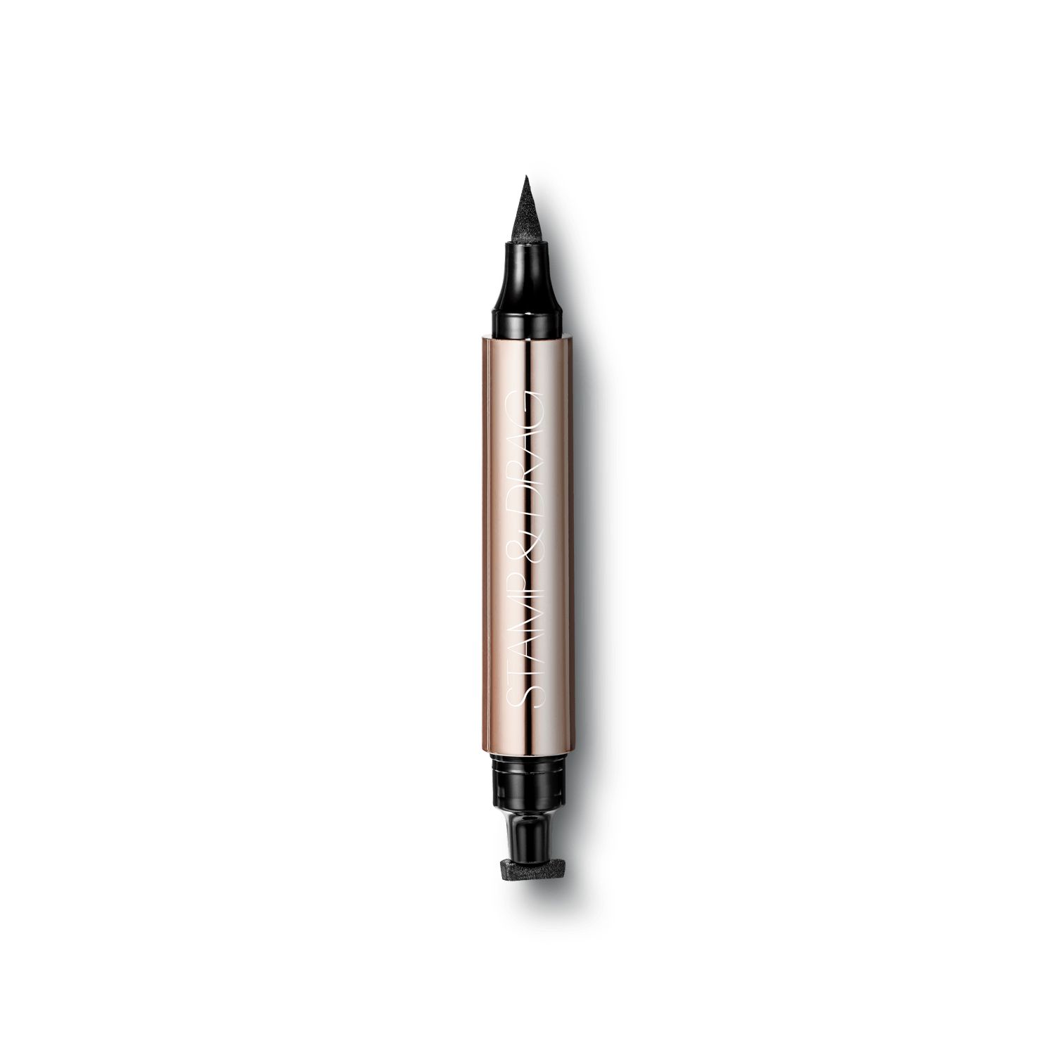 A unique double-ended pen featuring a perfectly shaped wing stamp plus a precisely pointed tip for winged eyeliner made easy.