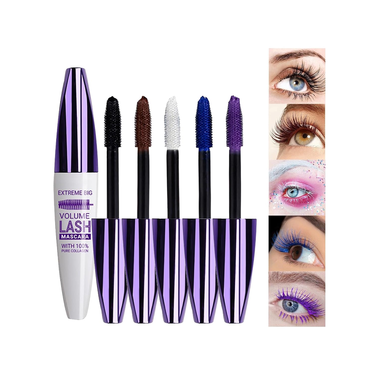 Volumized Color Mascara, Waterproof, Longlasting Mascara, 5 Color Black, brown, white, blue, purple Mascara for Eyelashes Eye Makeup False Lash Effect for Women 0.2fl oz